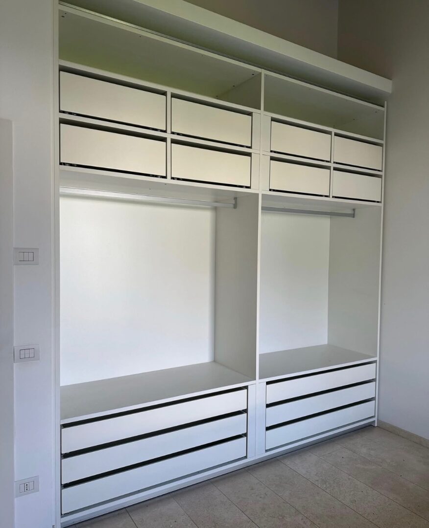 Dalle cabine armadio ai mobili contenitori, librerie e complementi, realizziamo arredi che valorizzano gli spazi e rispondono a ogni esigenza funzionale. Ogni pezzo è progettato nei nostri uffici tecnici e realizzato nel laboratorio interno, dove l’esperienza del legno incontra la precisione della lavorazione.